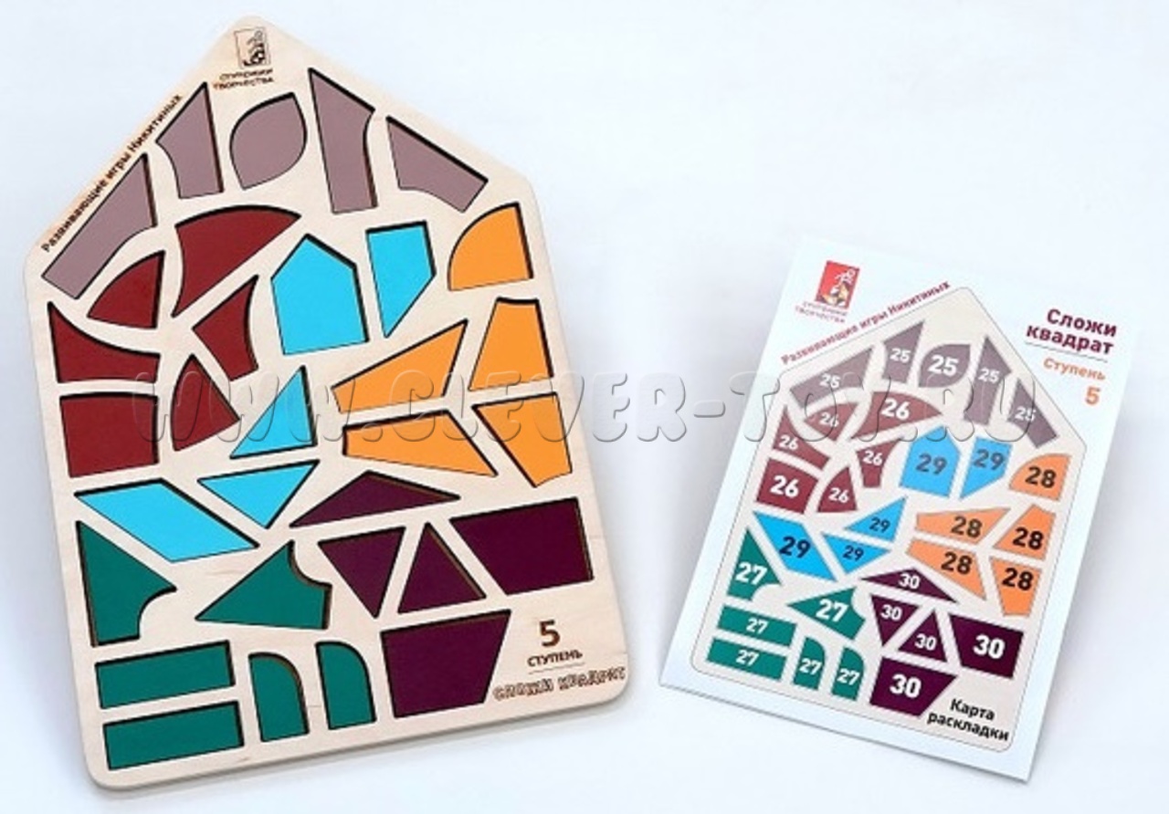 Сложи квадрат. Ступень 5. Планшет-домик (3 уровень Никитина, дерево)