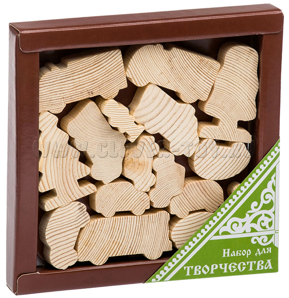 1. Деревянные фигурки автомобилей, деревьев, человесков - 18 деталей;