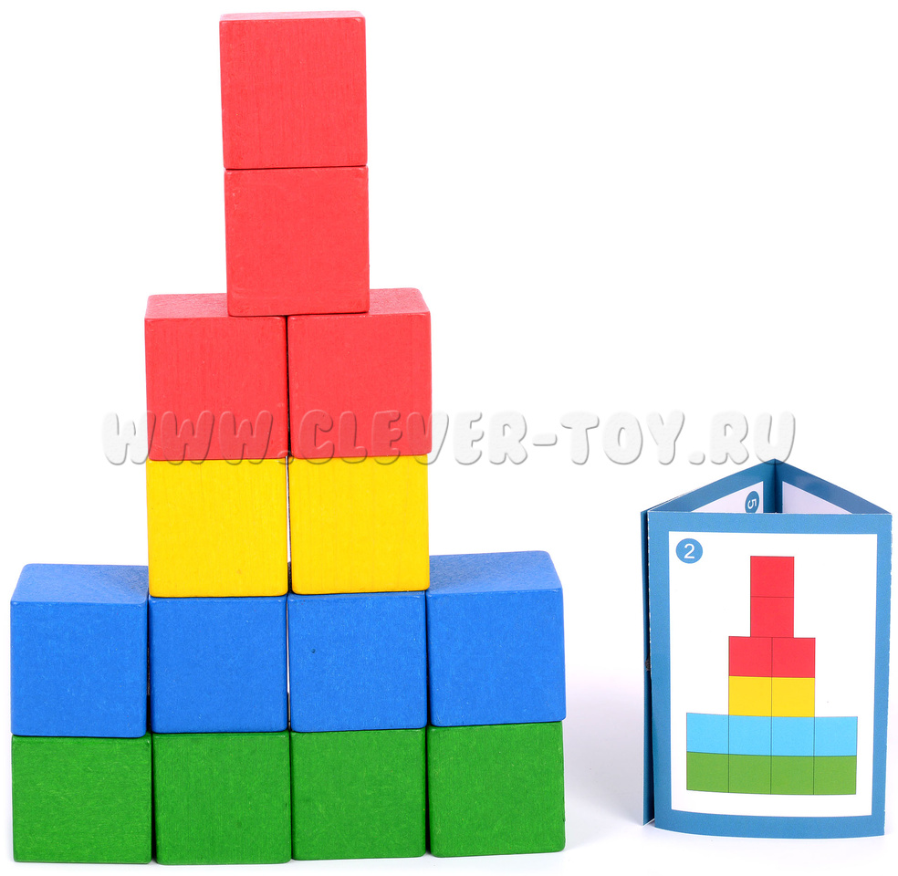 Из деревянных разноцветных кубиков "Мозаика" дети сами смогут придумывать разнообразные фигуры или складывать их по образцам на карточках-заданиях.
