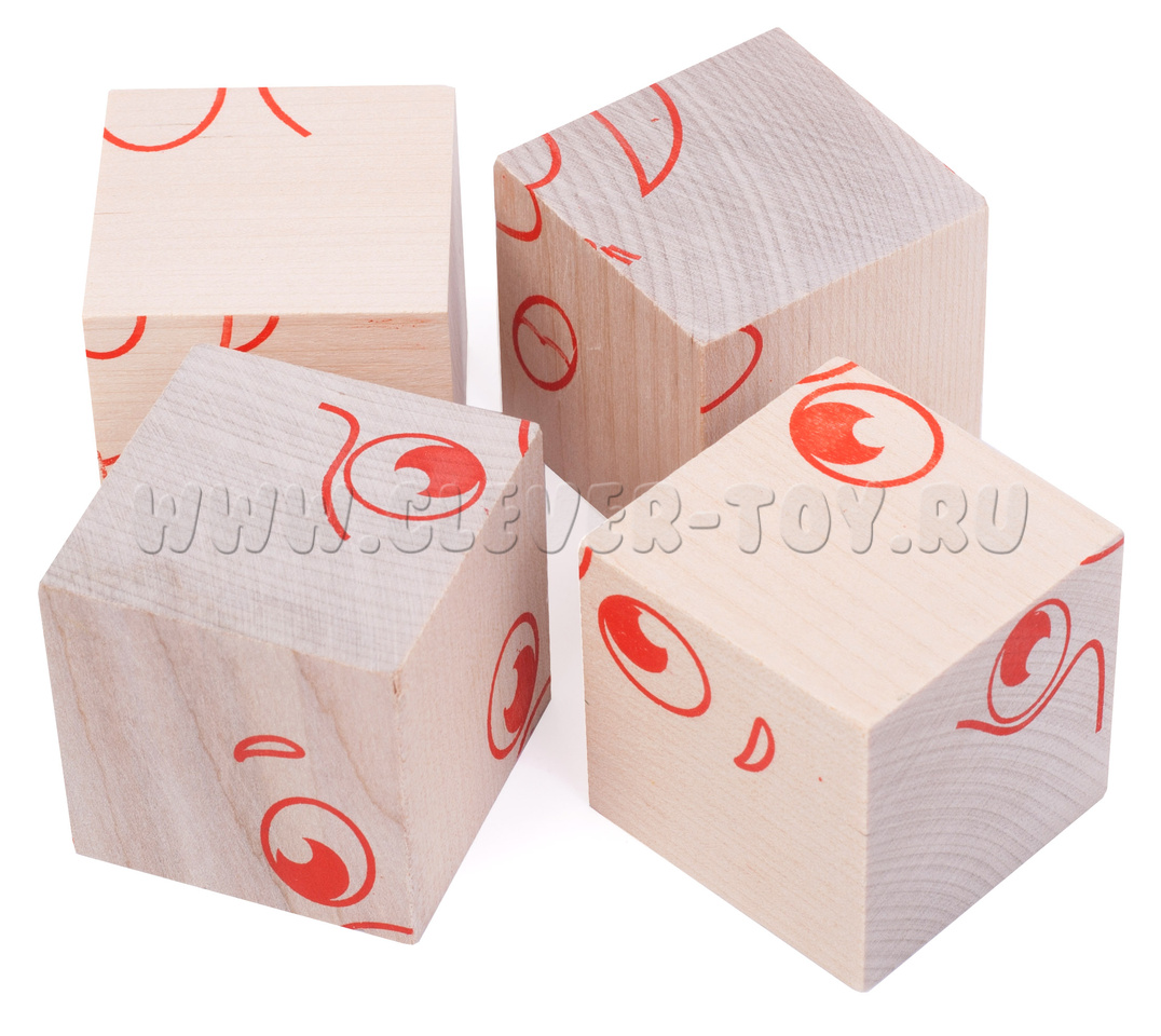 В состав входит четыре кубика, из которых ребенок может собрать 6 изображений, передающих настроение.