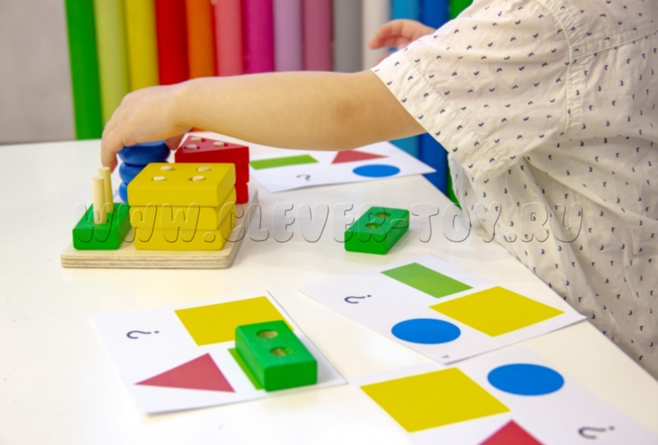 С набором "Геометрик Цвета и формы" ребёнок в процессе игры научиться определять и надевать геометрические детали на штырьки, создавать элементарные постройки, включая их в игровой сюжет, а также использовать в качестве шнуровки.