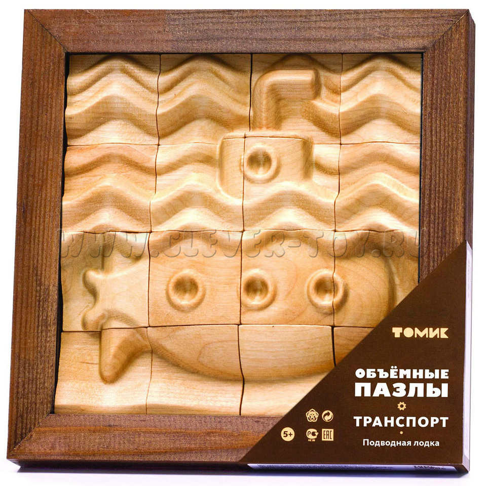 Пазл деревянный объемный "Подводная лодка" (16 деталей)
