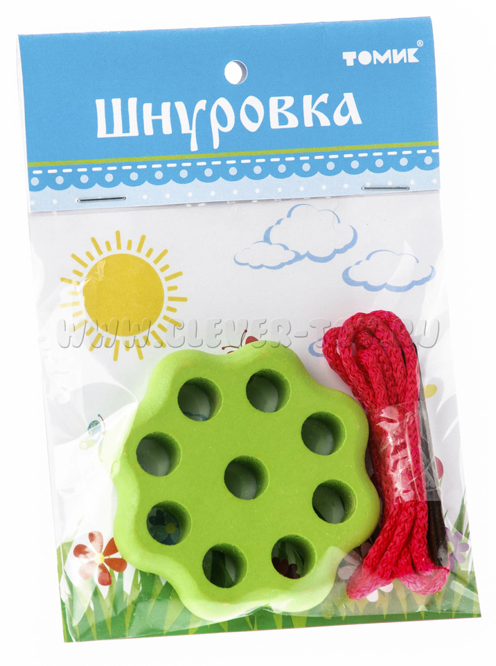 Состоит из иголки, шнурка, цветка с 5 отверстиями.
