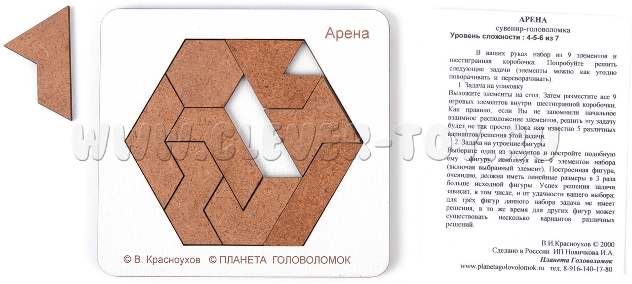 1. Задача на упаковку. Выложите элементы на стол. Затем разместите все 9 игровых элементов внутри шестигранной коробочки.