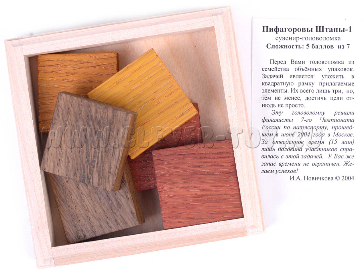 Вы играли когда-нибудь в тетрис? В головоломке “Пифагоровы штаны” перед вами стоит похожая задача. Все элементы у вас уже есть – остается только уложить их в деревянную коробочку.