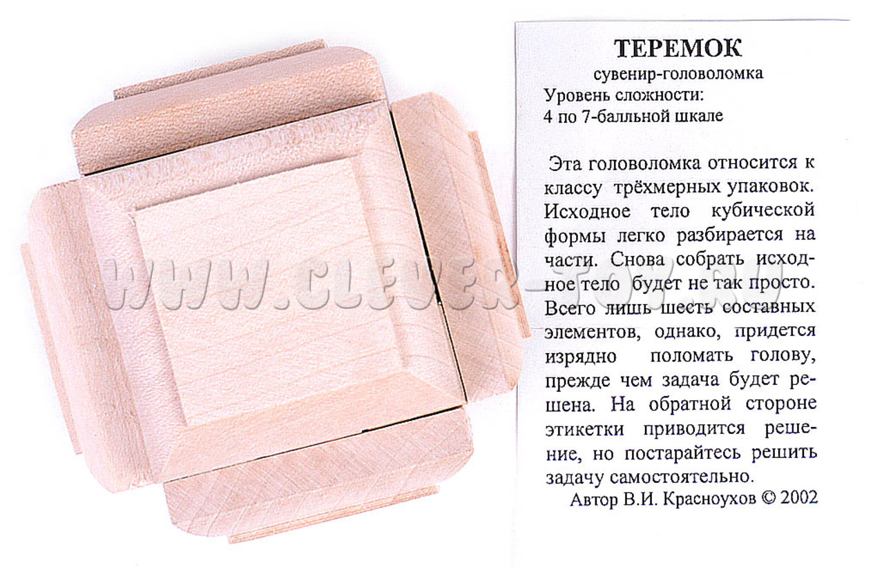 “Теремок” - это игрушка-головоломка, которая представляет собой миниатюрную глухой округлый куб. Вам нужно использовать свой интеллект, чтобы полностью решить эту головоломку.