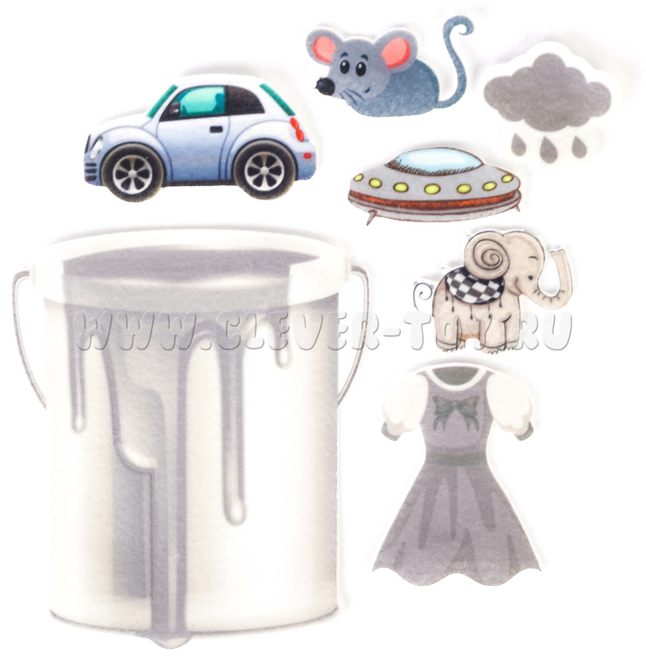 - 12 фетровых фигуры с изображением разноцветных ведёрок,