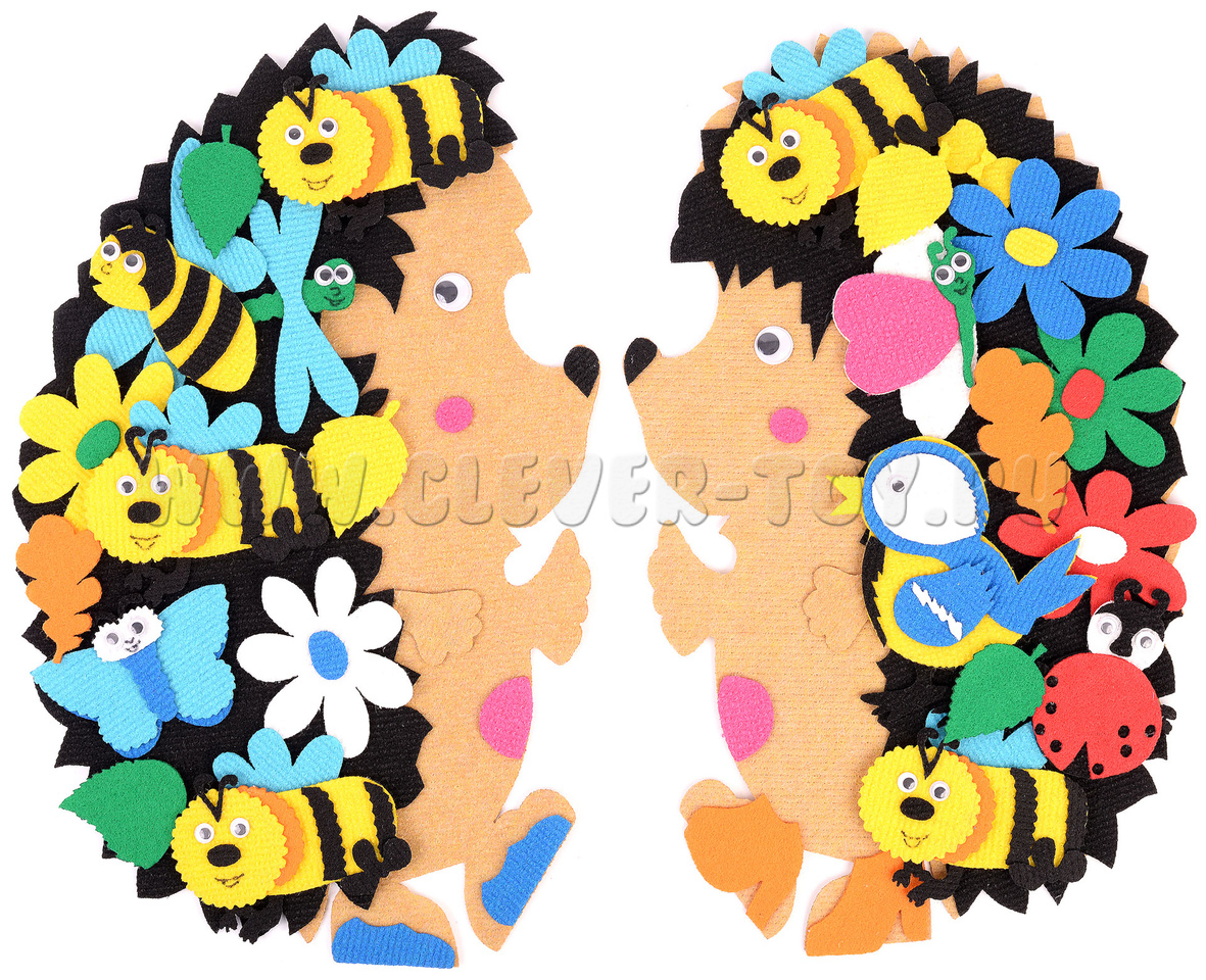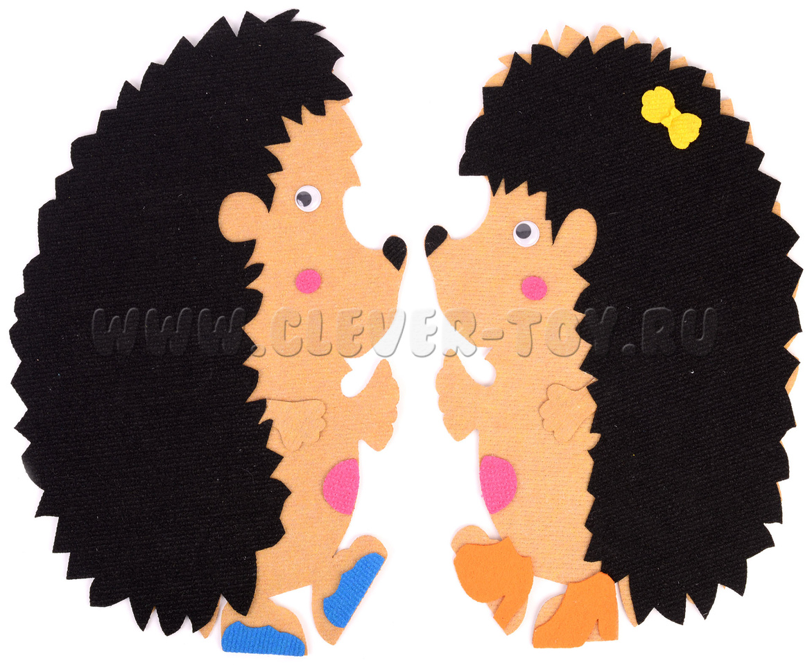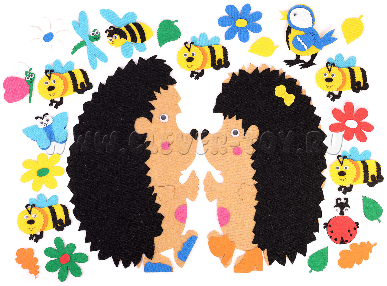 Сколько весёлых и интересных историй можно придумать с героями набора "Два ёжика"! Танцующие забавные фигурки ёжиков выполнены из яркого материала ковролина. Они не порвутся, не потеряют форму, окрашены безопасными красками, прорисованы вручную. У ёжиков есть друзья: ковролиновые насекомые и растения.