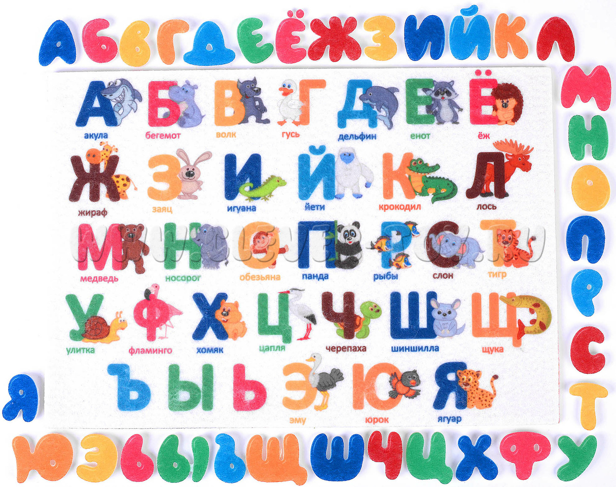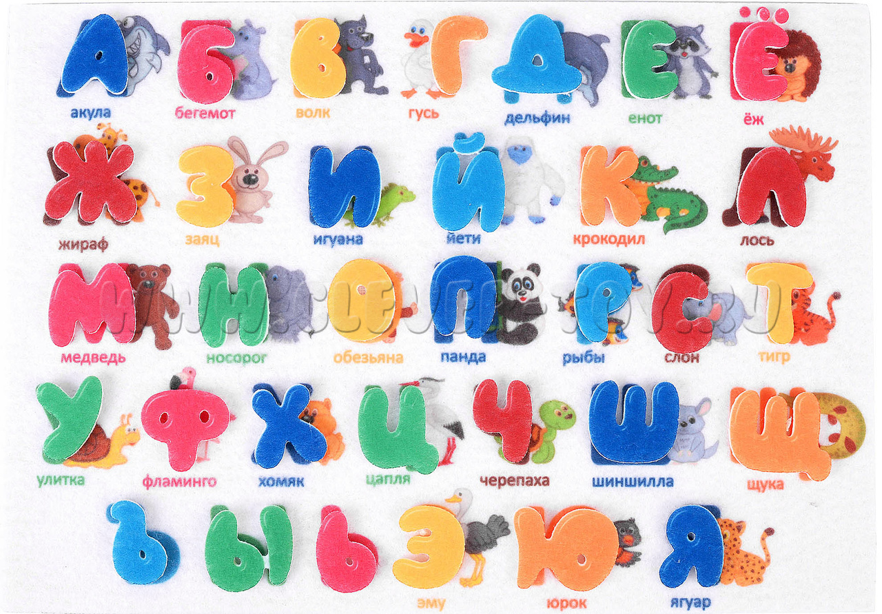 Все буковки оснащены многоразовыми липучками, благодаря которым они легко крепятся на игровом поле из фетра или ковролина.