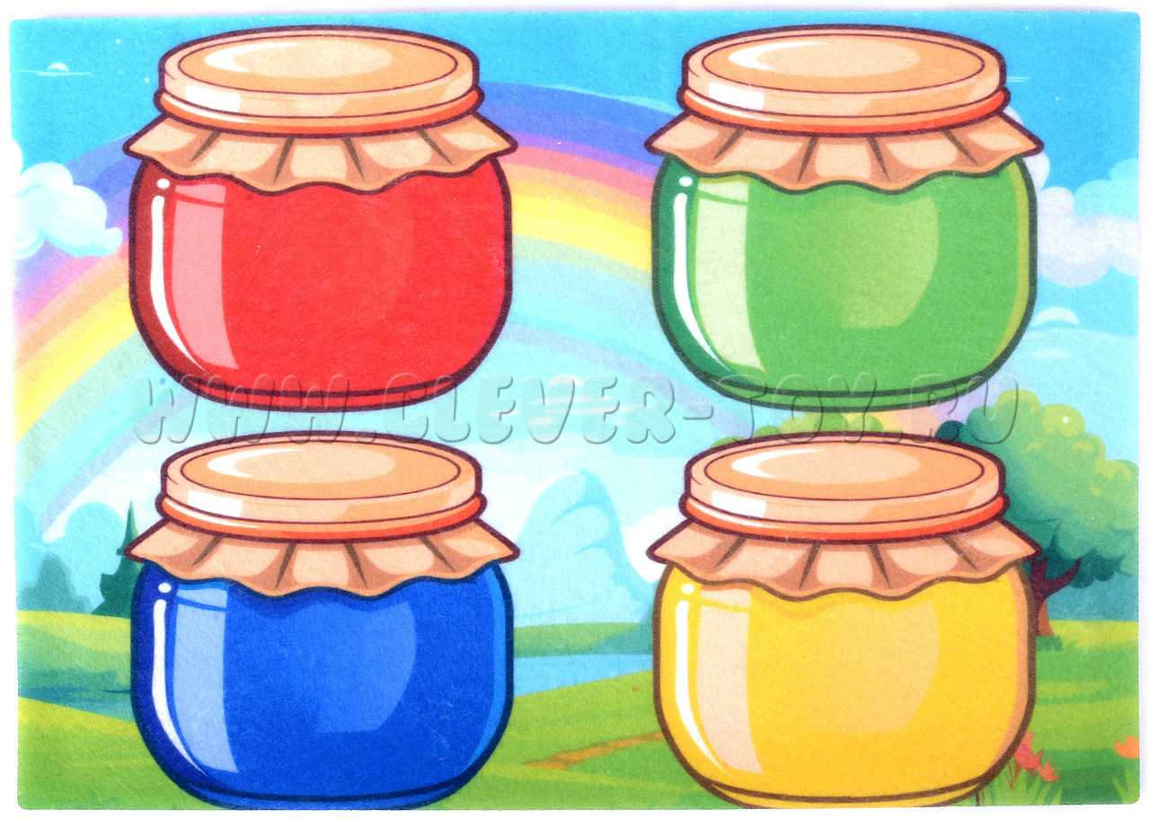 • Игровое поле с зеленым, красным, желтым и синим ведерками;