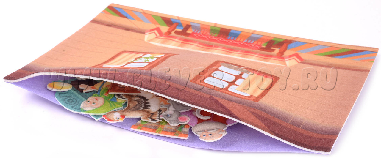 Модифицированный вариант детской сказки в игровое пособие из фетра принесет не мала удовольствия детям. Игра выполнена из фетра с нанесением безопасных и ярких красок. Она выполнена из прочного материала, который не порвется во время игры. Многоразовые липучки позволят не ограничиваться в своих фантазиях.