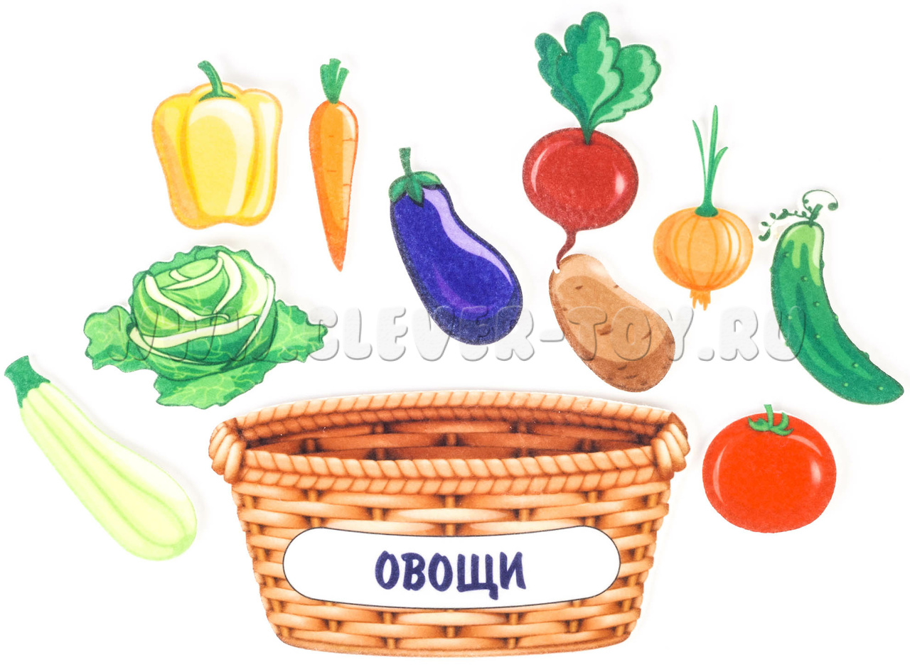 • овощи разных видов – 10 видов, морковка, помидор, лук, свекла, картошка, желтый перец, огурец, кабачок, капуста, баклажан.