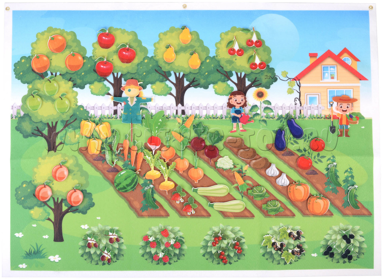 Игра «Сад и огород» — это увлекательное обучающее пособие для детей дошкольного возраста, которое поможет им узнать больше о фруктах, ягодах и овощах, а также о том, где и как они растут.