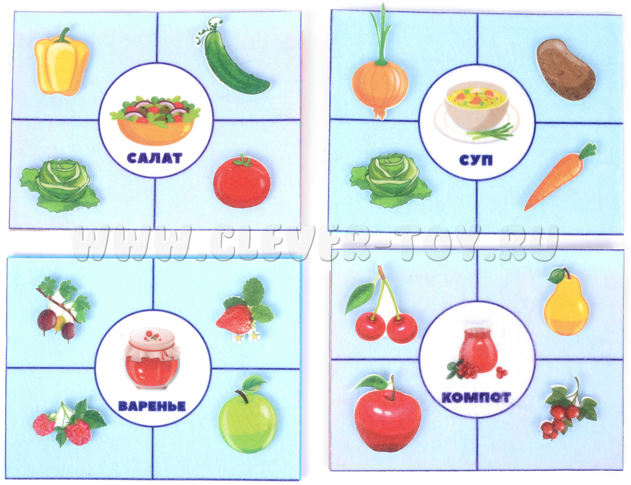 1. Приготовление запасов. Предложите ребёнку собрать урожай и сделать заготовки, правильно распределив продукты для супа, варенья и компота.