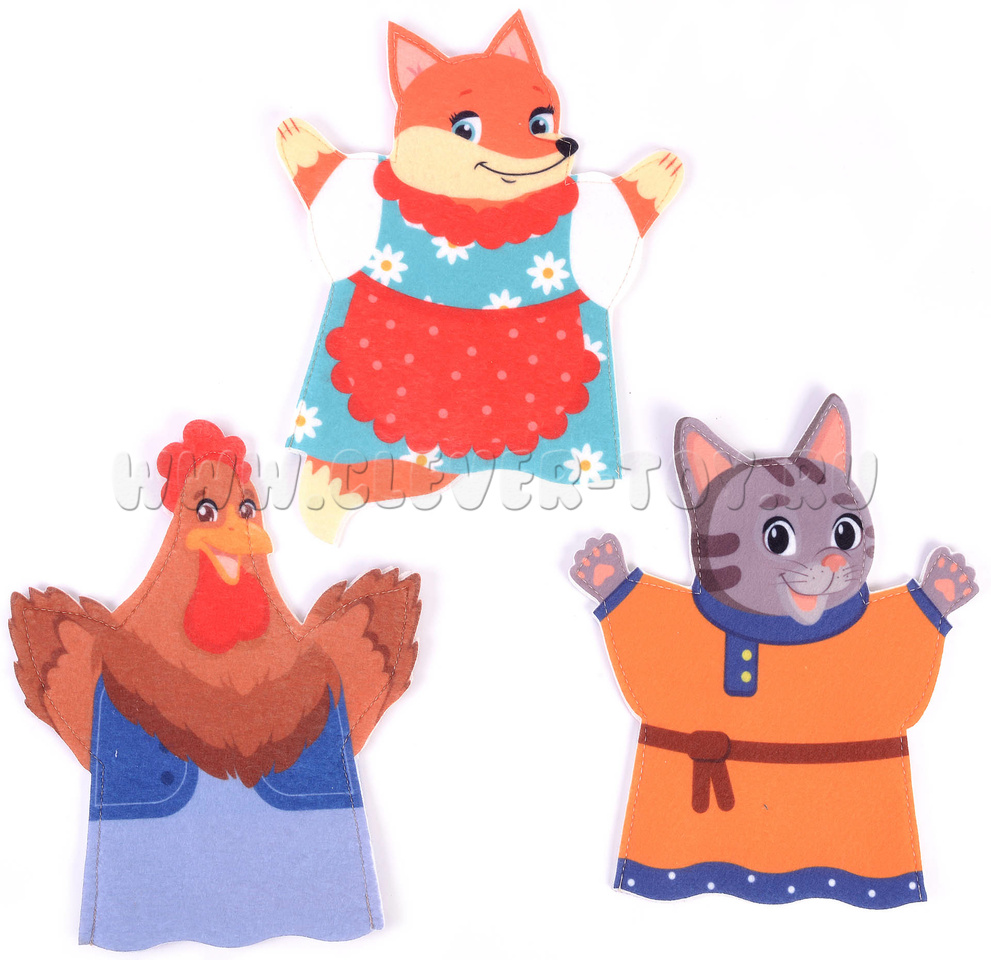 Театр на руку "Кот, петух, лиса" фетр (3 детали)