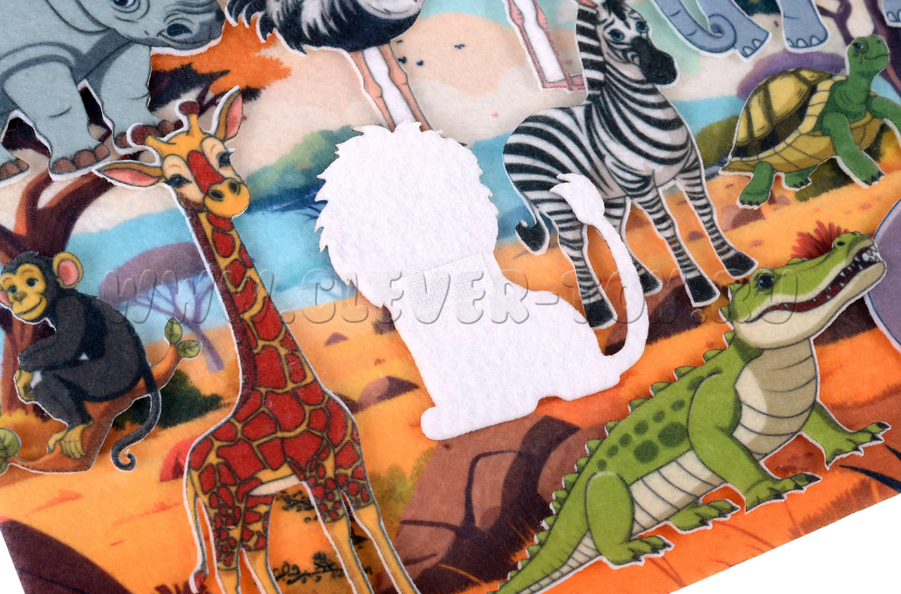 Зубастые и клыкастые, пятнистые и полосатые. Каких только существ нет на планете? С помощью тканевого конструктора «Животные жарких стран» ребенок в познавательной форме познакомится с самыми разными обитателями южных континентов. Регулярно занимаясь с учебным пособием, дети узнают больше об окружающем мире, расширят кругозор. Параллельно, при взаимодействии с мягкими деталями они смогут развить свои пальчики.