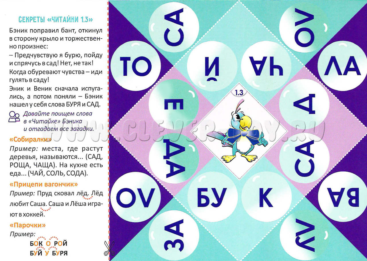Состав игры (4 варианта "Читайка" разной степени сложности):