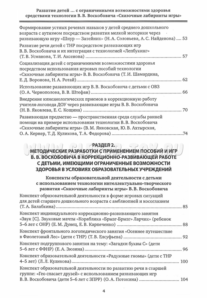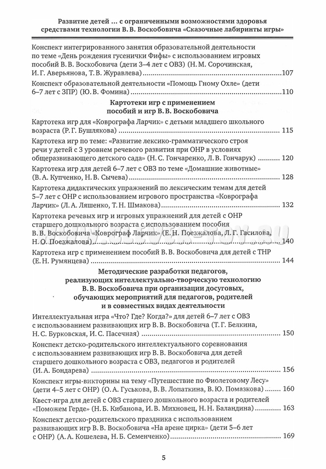 Пособие представлено материалами IX Всероссийской научно-практической конференции с международным участием (17–19 февраля 2021 года, г. Санкт-Петербург) и содержит два раздела: «Статьи педагогов, реализующих технологию интеллектуально-творческого развития В. В. Воскобовича «Сказочные лабиринты игры» в работе с детьми, имеющими ограниченные возможности здоровья», «Методические разработки с применением пособий и игр В. В. Воскобовича в коррекционно-развивающей работе с детьми, имеющими ограниченные возможности здоровья в условиях образовательных учреждений».