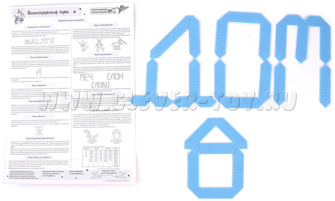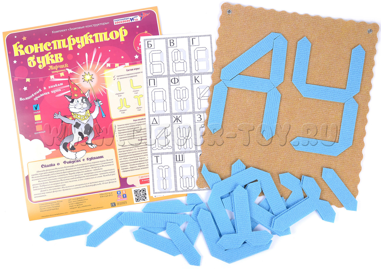 • увеличенная комплектация, позволяющая сконструировать не только одну букву, но и слоги, слова, состоящие из 2-6 букв,