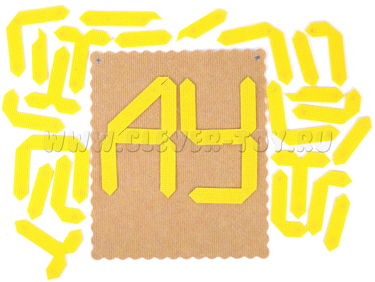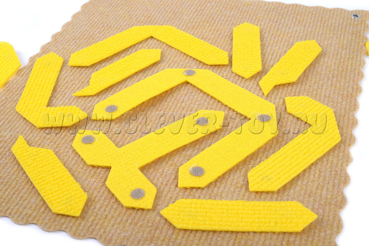 - 30 элементов из ковролина разной формы жёлтого цвета– «стрелочки» 8 шт., «уголки» 4 шт., «воротики» 2 шт., «клюшки» 6 шт., «лапки» 4 шт., «совочки» 6 шт.