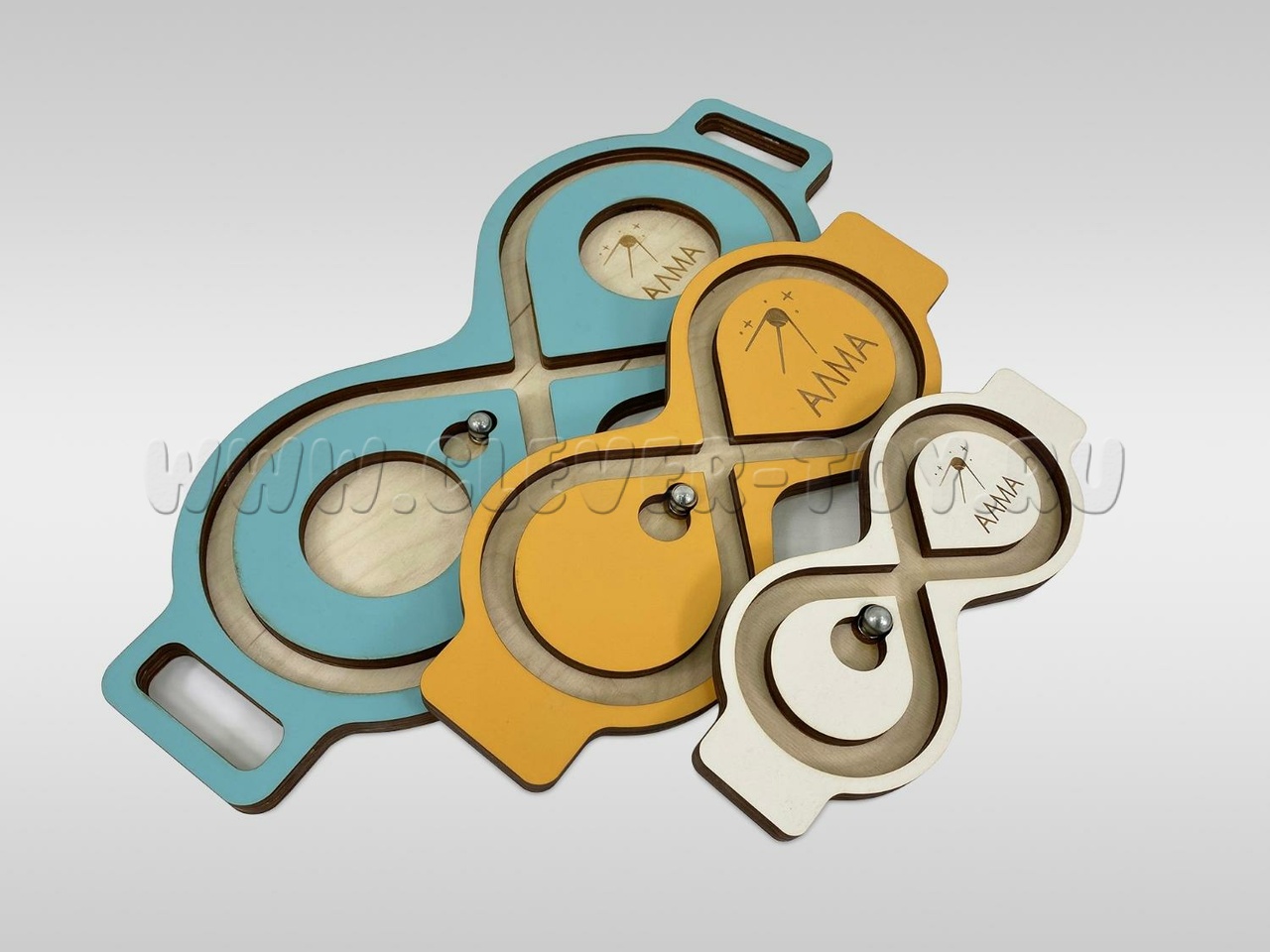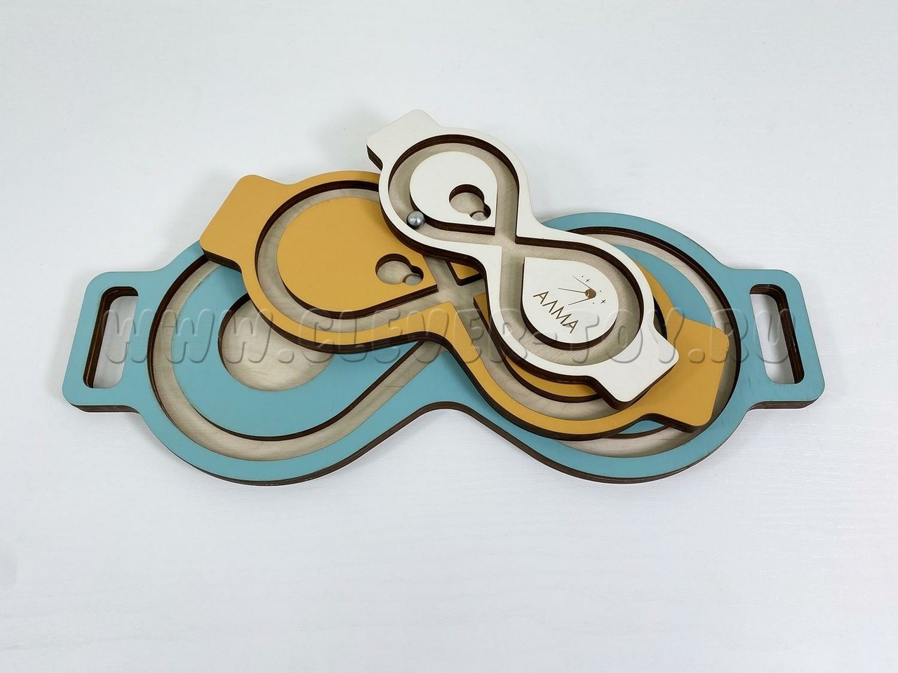 Балансир-лабиринт для стимуляции мозговой активности и снижения стресса. Он выполнен в виде перевёрнутой восьмёрки с металлическим шариком, который катается при изменении положения лабиринта.