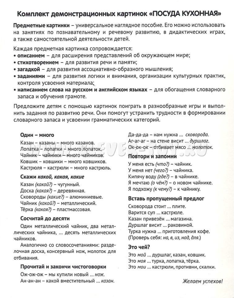 - универсальность: демонстрационные картинки можно использовать не только для обучения, но и для игр.