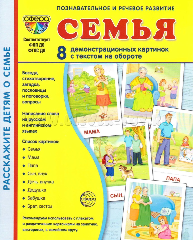Демонстрационный комплект "Семья", который выпускает издательство "Творческий центр Сфера" поможет сформировать представление о главных людях в жизни и заложить семейные ценности. В преддверии Международного дня семьи данный комплект станет замечательным пособием, чтобы поговорить с ребенком о роли каждого члена своей семьи.