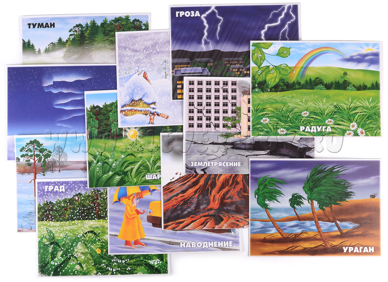 Предлагаем демонстрационный материал, знакомящий детей с явлениями природы. На картинках изображены все погодные и природные явления, которые происходят на нашей планете Земля. Пособие подходит для занятий в группах детского сада, а также индивидуально.