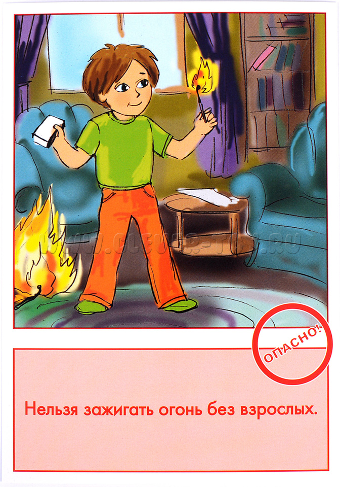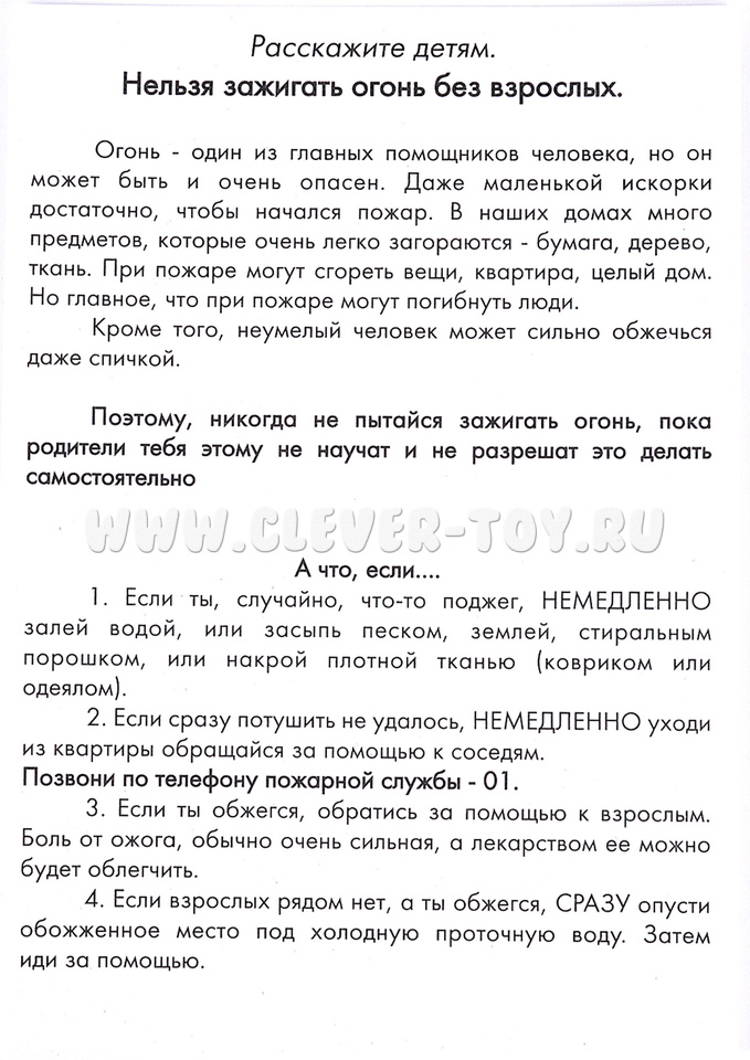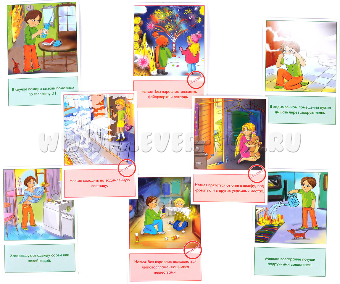 Наглядные карточки от ООО "Маленький гений" познакомят ребёнка с правилами безопасного поведения с огнём: