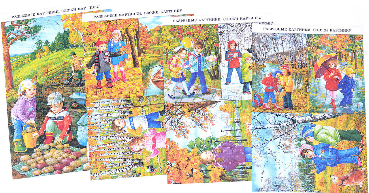 - 10 разрезных картинок (для игры "сложи картинку") на 4 листах А4;