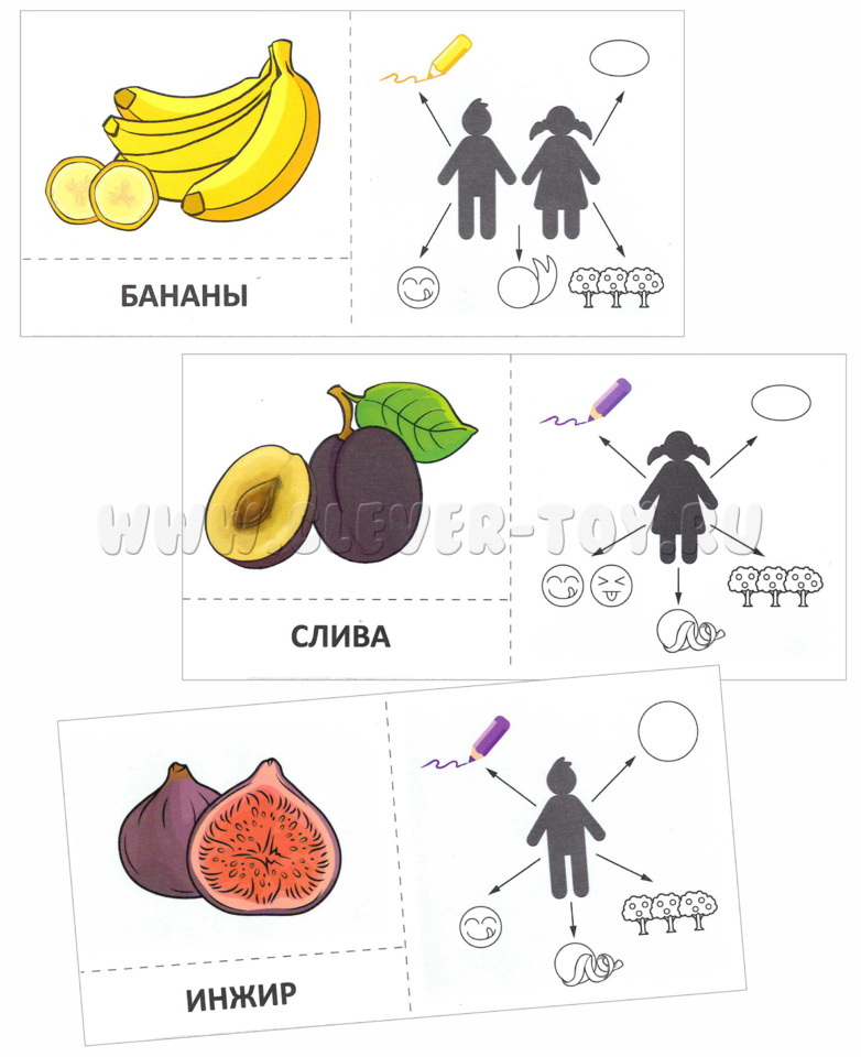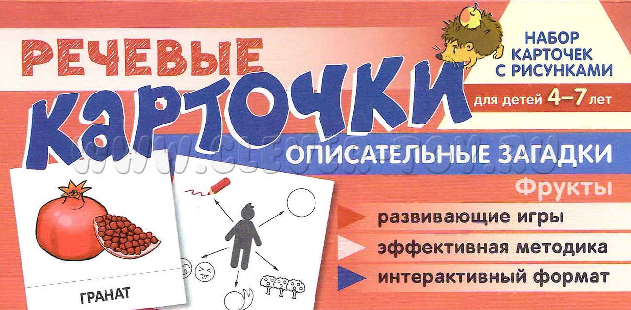 Набор карточек с рисунками. Речевые карточки. Описательные загадки. Фрукты.