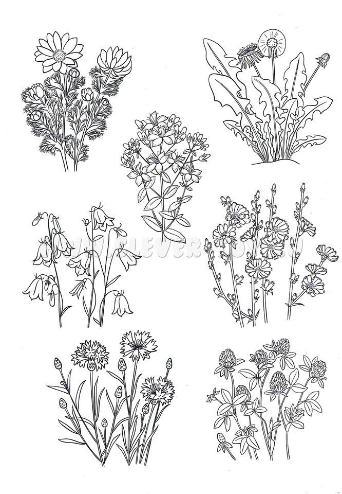 Рекомендуется посвящать одно задание на каждый цветок. В пособии есть приложение с изображениями цветов, которые можно вырезать и составить аппликацию. 14 видов цветов, описываемые в пособии: одуванчик, ромашка, василек, зверобой, цикорий, клевер луговой красный, колокольчик, лютик, мак полевой, гвоздика, травянка, тысячелистник, горицвет, чистотел.