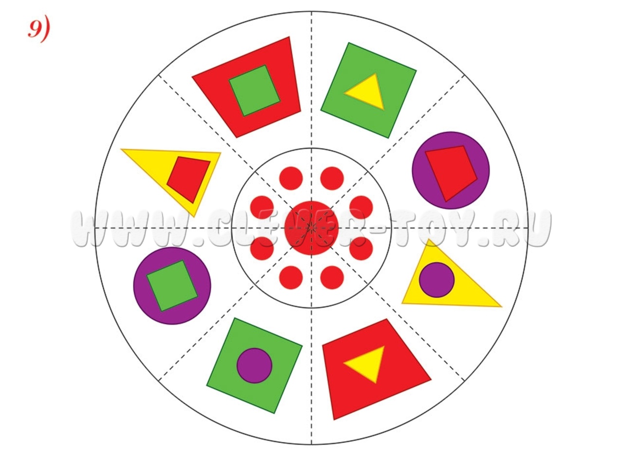 - научиться анализировать цвет и геометрическую форму, расположение (рядом-напротив).