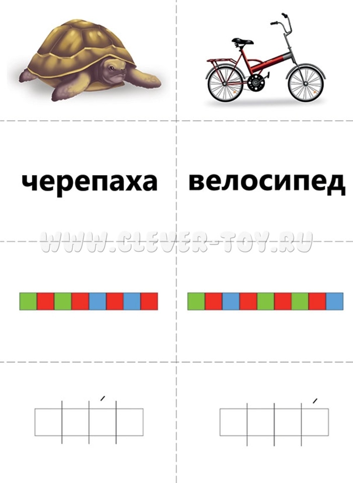 - Это игра для индивидуальных и/или групповых занятий. Цель игры: подобрать слово и две схемы (звуковую и слоговую) к каждой из картинок. Если участвует группа детей, карточки с картинками (картинки можно заменить на слова) раздаются игрокам поровну, а ведущий начинает показывать поочередно карточки со словами (картинками) и схемами. Подходящие карточки участники забирают себе, побеждает тот, кто быстрее и правильнее всех соберет свои карточки;