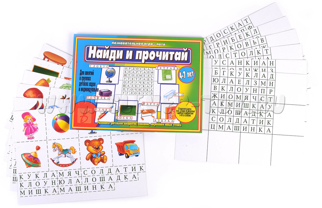 Перед вами игра для детей старшего дошкольного возраста. Она поможет развить зрительное восприятие, внимание и закрепить навыки чтения. Для начала игры разрежьте карточки по пунктирным линиям. В результате у вас получится 48 карточек с изображениями предметов и 48 карточек со словами.