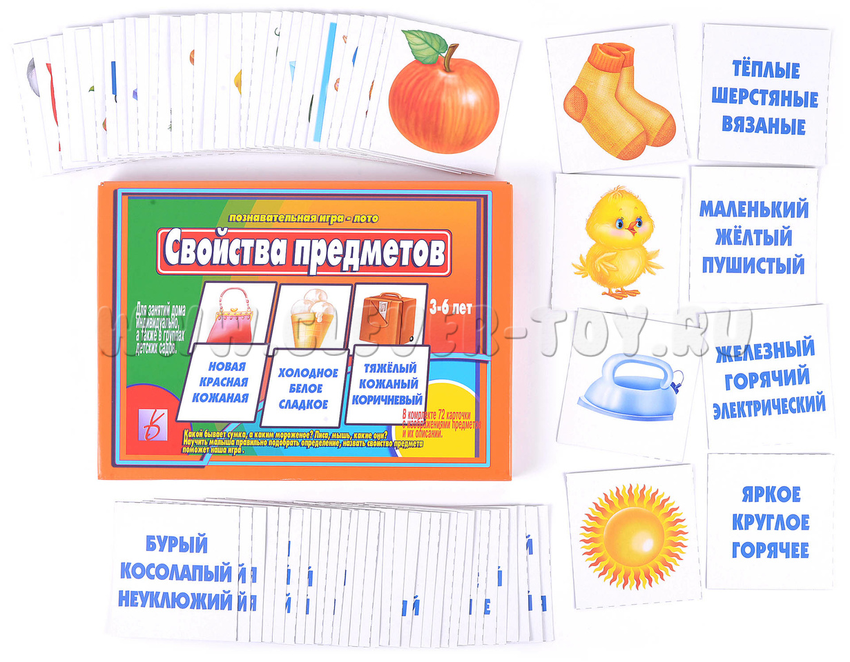 Развивающая игра-лото "Свойства предметов" подойдет для занятий с детьми как младшего, так и старшего дошкольного возраста и поможет ребенку в: