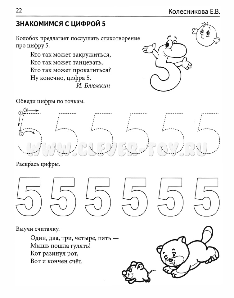 Так как большинство цифр - 2, 3, 5, 6, 8, 9, 0 - имеют округлые формы и только цифры 1,4 и 7 состоят из прямых линий, то разработанные нами игровые упражнения расположены в определённой логике и последовательности. Система заданий предполагает рисование прямых и округлых линий, штриховку, развитие мелкой моторики. Все предложенные задания носят практический характер: дорисуй, сосчитай, обведи, закрась, помоги и т.д.