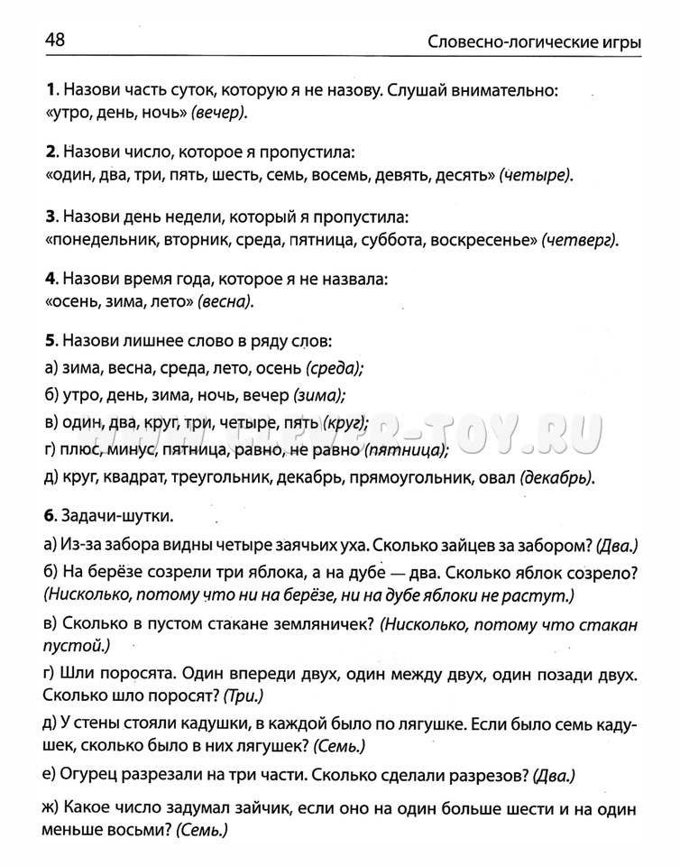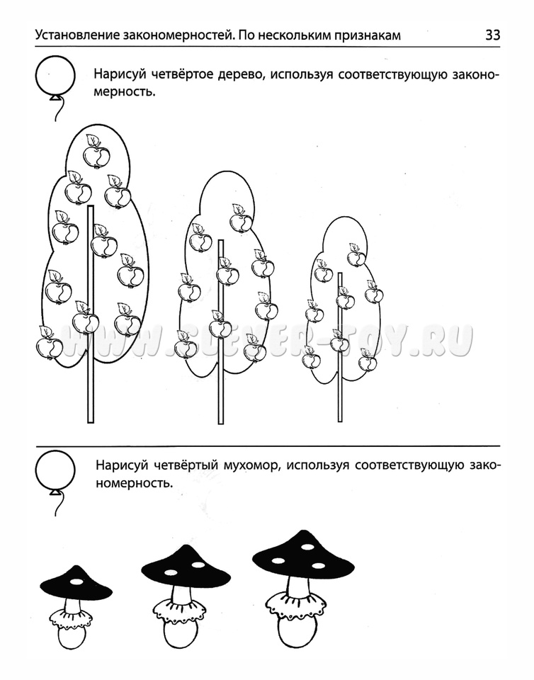 Они формулируются в виде конкретного действия с помощью глаголов: нарисуй, обведи и т.п.; имеют понятный результат, который ребёнок определяет с помощью критерия взрослого или по образцу. У него продолжают формироваться предпосылки учебной деятельности: понимание учебной задачи, самостоятельное решение и навык самоконтроля и самооценки. Логические задачи не требуют вычислений. Их решение направлено на поиск связей и отношений между отдельными предметами, явлениями, ситуациями.