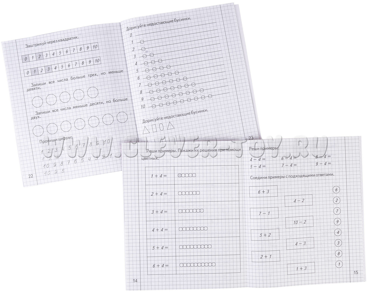 Набор представляет собой полноценный математический тренажер: первая часть содержит задачи, направленные на знакомство с цифрами и их начертанием, числами, их составом, развитие навыков систематизации и анализа информации, формирование навыка устного счёта, отработку операций сложения и вычитания. Вторая - усложненная, - часть подразумевает повторение и закрепление полученных ранее навыков и включает в себя: примеры, последовательности, сравнение чисел, поиск и исключение лишнего.