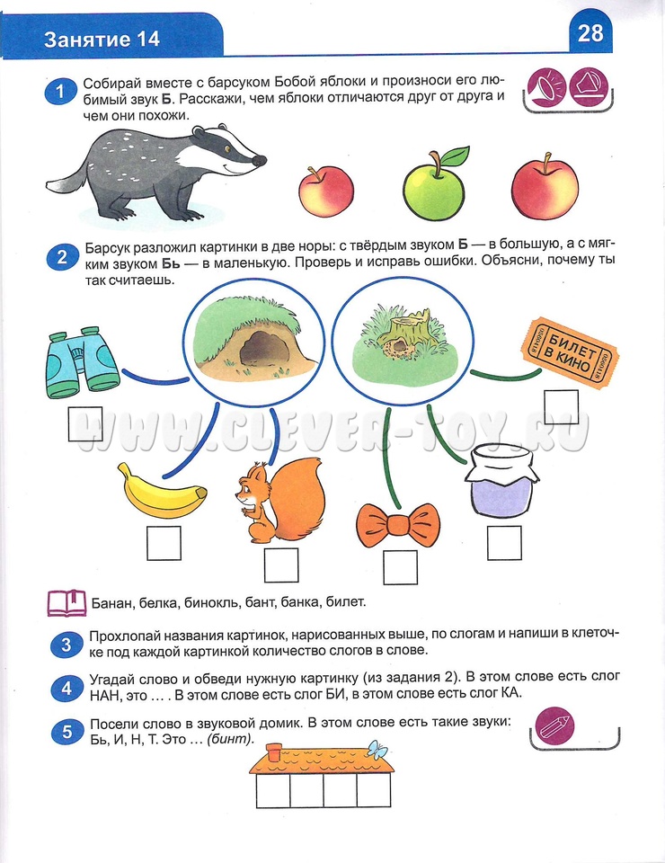Дети осваивают разные виды звукового анализа: линейный, позиционный, количественный. Вводятся упражнения на формирование языкового анализа и синтеза: дети составляют предложения и анализируют их, делят слова на слоги.