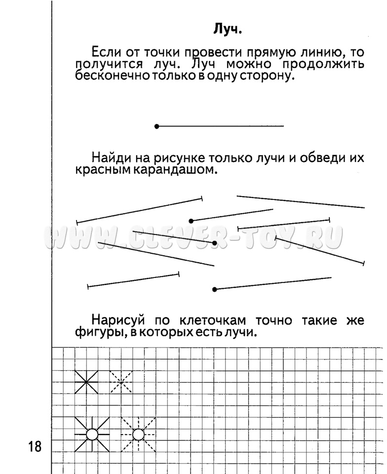 Малыши освоят такие понятия, как точка, линия, угол, луч, отрезок, прямая, ломаная, замкнутая линии.