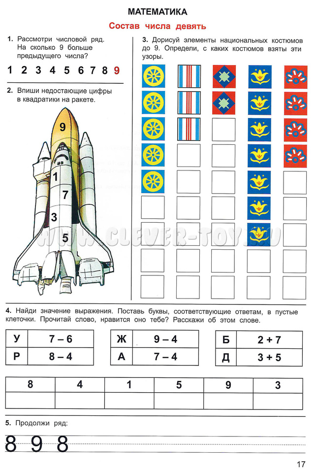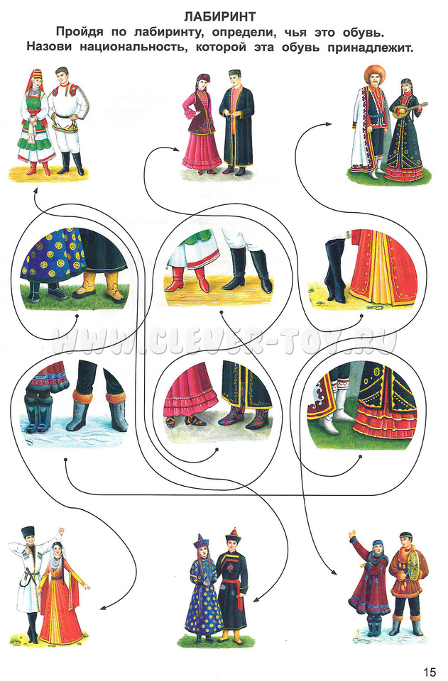 Данная тетрадь содержит познавательную информацию и познавательно-игровые задания. Познавательная информация представлена в виде: Иллюстраций национальных костюмов и описании костюма (Башкирский костюм, Калмыцкий костюм, Чеченский костюм, Карельский костюм, Мордовский костюм, Русский костюм, Татарский костюм, Цыганский костюм, Бурятский костюм, Чукотский костюм). Познавательно-игровые задания: Головные уборы (задача ребенка: назвать национальности которые изображены на картинке); Лабиринт; Викторина (задача ребенка: ответить на 12 вопросов по данной теме); Математика (задача ребенка: изучить состав числа девять и выполнить 5 заданий). Формат тетради: А4. Количество страниц: 17.