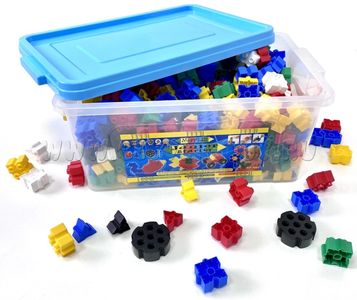 Конструктор Morphun Junior 500 Set упакован в ударопрочный пластиковый короб с крышкой и удобной ручкой для переноски и хранения деталей.
