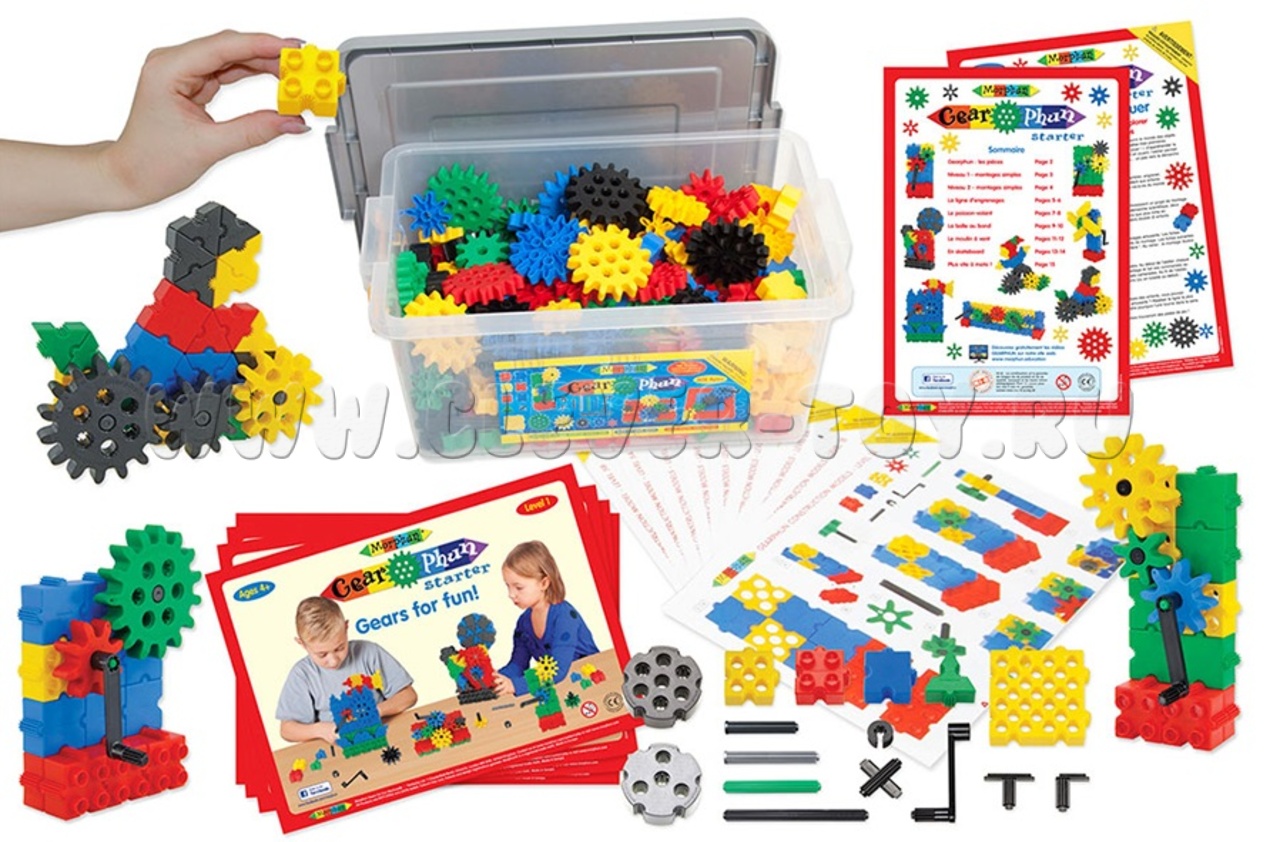 • В комплекте базовые детали, в том числе в форме колеса, шестерни, соединительные элементы;
