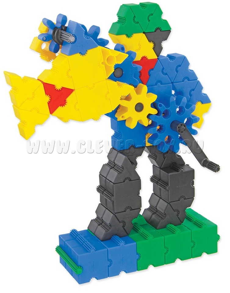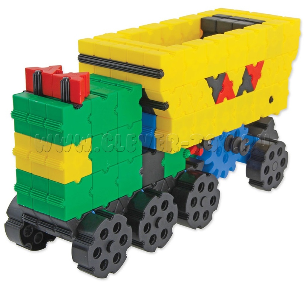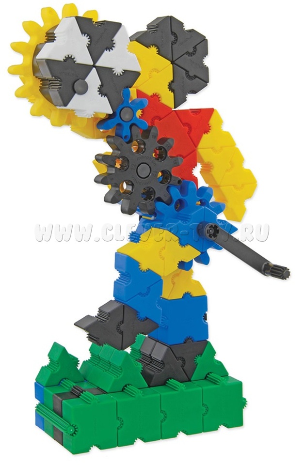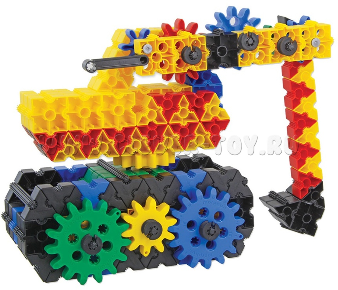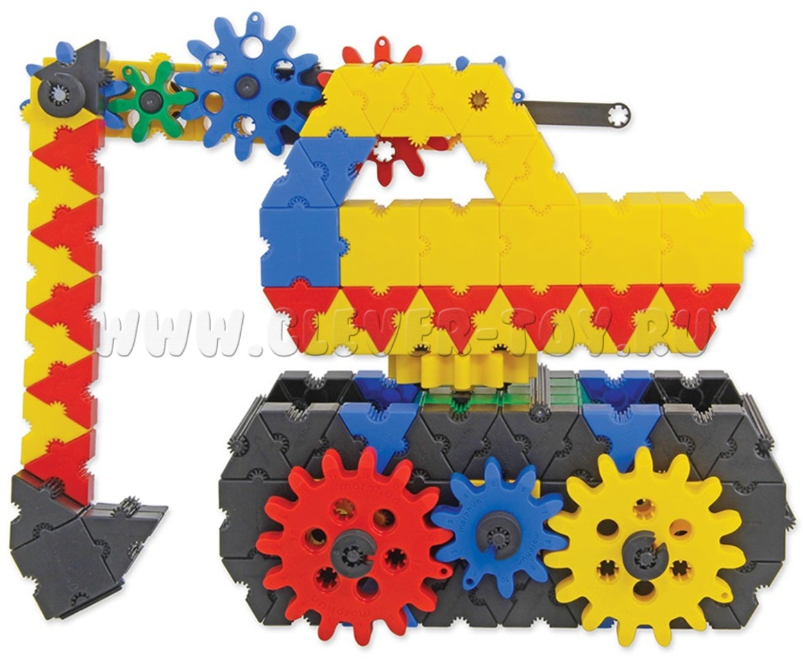 В составе конструктора 400 деталей с уникальным, запатентованным способом соединения деталей, в том числе детали 7 разных форм, размеров, соединительные элементы 9-и разных форм и размеров, зубчатые колеса 5-и разных размеров, предоставят практически неограниченные возможности для развития фантазии ребенка при сборке моделей с зубчатыми передачами. С их помощью игрушечные экскаваторы, поезда, краны будут двигаться, словно настоящие!