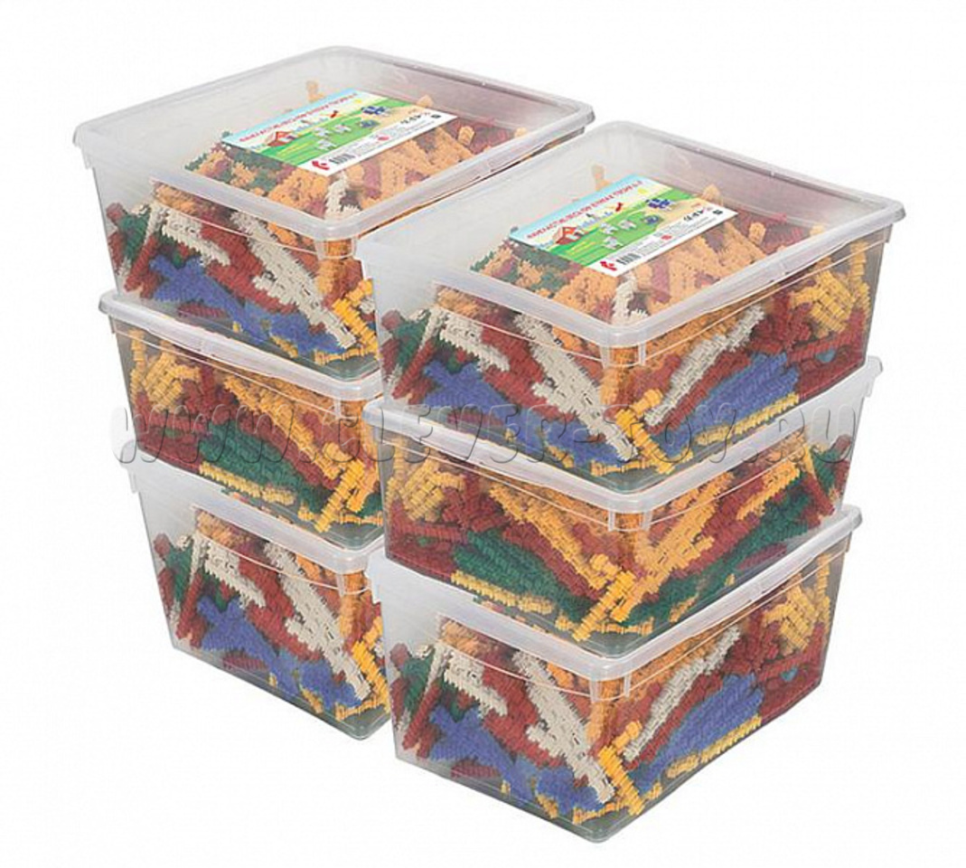 Упаковка: 6 пластиковых контейнеров объёмом 18 литров каждый.