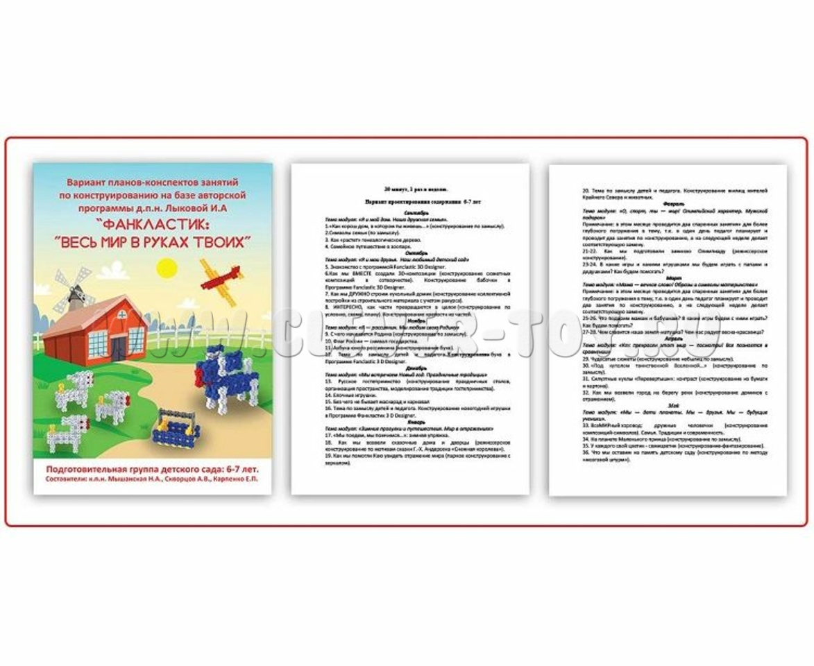 Планы-конспекты (методическое пособие для педагога в электронном виде) включают 36 занятий. В ходе занятий у детей формируется целостная картина мира с учётом индивидуальных особенностей каждого ребёнка. Раскрывается универсальный характер конструирования как деятельности, позволяющей создавать целостный продукт (постройку, конструкцию) во всех сферах жизни. Конструировать можно не только постройку, но и сказку, танец, букет, план, эмоции и другое.