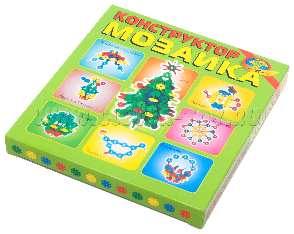 Состоит из круглых плоских фигур с прорезями для соединения. Фигуры четырех цветов в количестве 80 шт. По 20 каждого цвета.