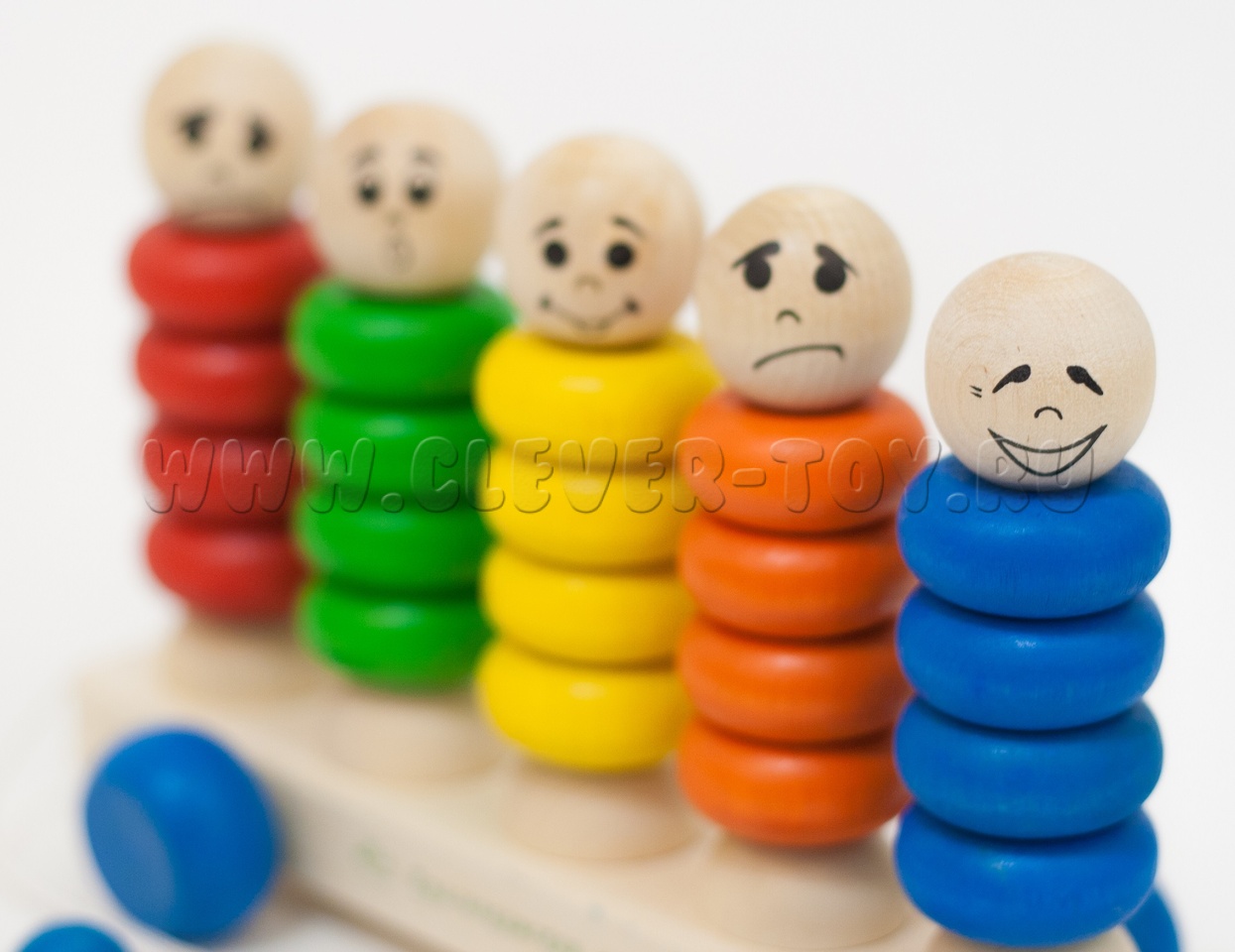 Игра предназначена для детей с 1 года. Многофункциональная занимательная игрушка. Может использоваться как каталка и пирамидка, а так же для шнурования бусиков и для изучения элементарных человеческих чувств.
