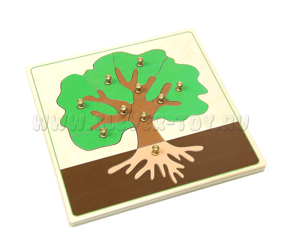 Знакомство со строением дерева путем составления целого из частей и проговаривания их названий способствует развитию речи, увеличению словарного запаса и формированию восприятия формы.